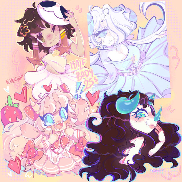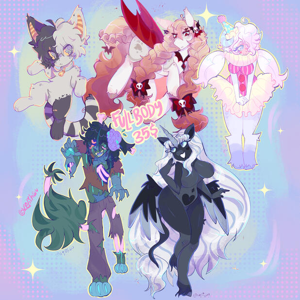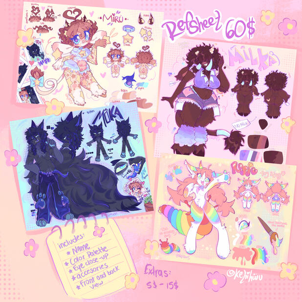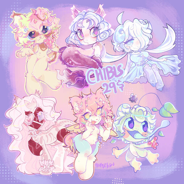 it includes everything seen on the image with a special touch to fit well with your character ;)☆ you can choose if youd like the back view to be normal, or to have a front and back view in a chibi form☆ any extras will be from 5$ - 10$ (not including extra headshots or busts)